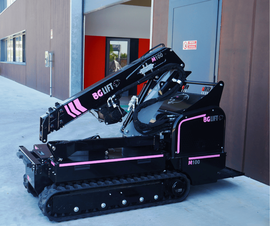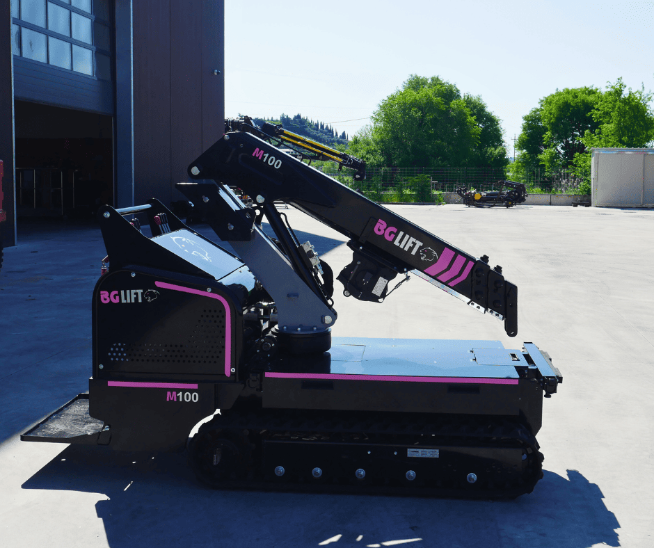La BG LIFT M100 è una gru compatta cingolata progettata per garantire massima efficienza in spazi ridotti. Grazie al carro Pick & Carry allargabile e ai cingoli in gomma nera, offre stabilità e manovrabilità su ogni superficie, diventando la soluzione ideale per imprese edili, installatori e noleggiatori.